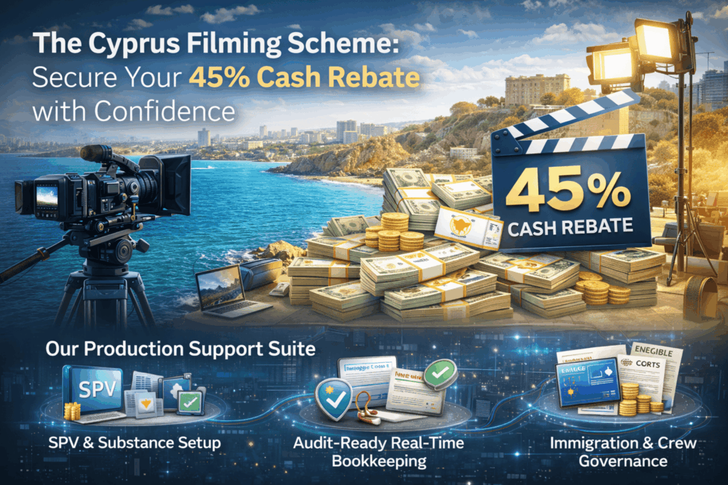 The Cyprus filming incentive is the cornerstone for production companies looking to leverage the Mediterranean’s most cost-effective “natural studio.” With over 300 days of sunshine and the 2026 “Olivewood” extension, production companies can now access a cash rebate of up to 45% on qualifying expenditures incurred in the Republic. CX Financia acts as your local financial and regulatory architect, engineering your production’s accounting framework to ensure every Euro of Qualified Production Expenditure (QPE) is captured, audited, and successfully disbursed within the statutory windows.