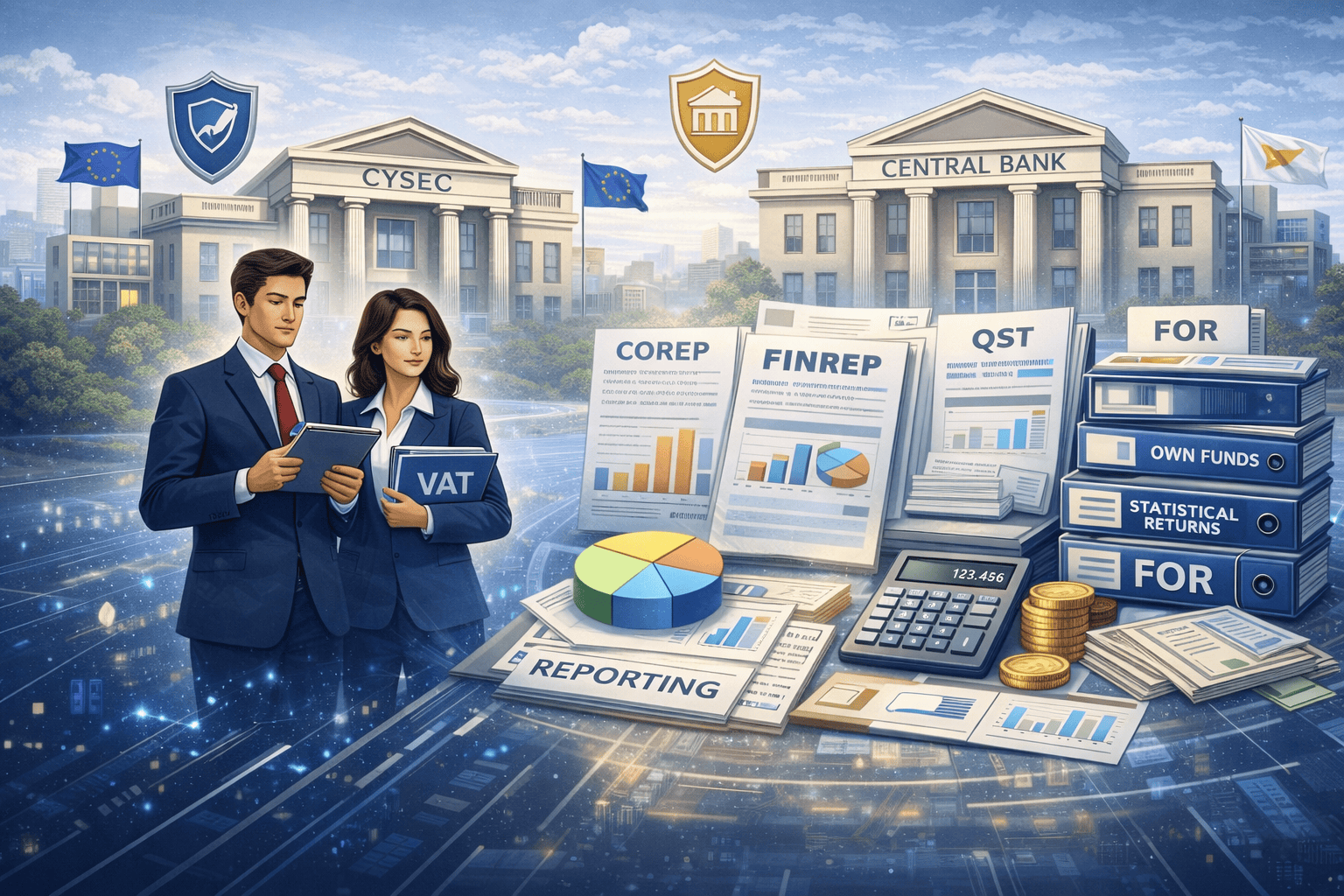 We support firms regulated by the Cyprus Securities and Exchange Commission (CySEC) and the Central Bank of Cyprus (CBC) with the preparation and submission of prudential and financial regulatory reports, ensuring accuracy, internal consistency, and timely submission in line with supervisory requirements.